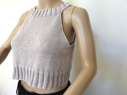 This short and airy summer top is knitted with a 100% cotton yarn. You can wear this top on really hot days. If it is a little bit cooler, you can wear a blouse underneath, so that you can enjoy it for a long time.
