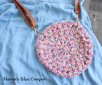 Crochet this cute circle bag with just one skein of Lion Brand Flikka yarn. Step by step photo tutorial on how to line the bag is included.