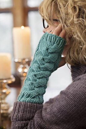 These fingerless mitts are super quick to knit, worked with two skeins of Plucky Snug. Your Cross Country mitts are knit almost entirely in the round, from cuff to fingers. The chubby cables that run along the top of your hands will keep out the worst that Mother Nature sends your way.