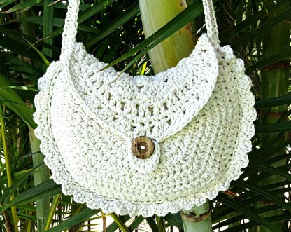 I have designed the bag in two pieces. A front and a back section which are joined together. Joining the bag and the scalloped edge are working in one continuous piece. For this pattern I have used a 10 ply chunky cotton. You could use an 8 ply yarn but keep in mind the bag measurements will be smaller than indicated below.