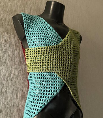 This crochet pattern is for a very special man’s mesh tank top. The front is made of two pieces that cross over, leaving the abdomen uncovered. The shirt could be worn as is, or over another top to really make the mesh stand out.
