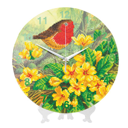 Crystal Art Diamond Painting-Uhrenset „Rotkehlchen“