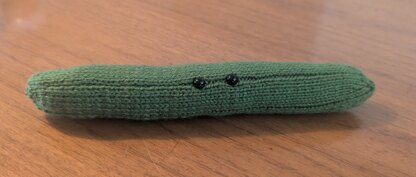 Introducing my Cucumber knitting pattern. This cucumber is knitted in one piece using knits and purls to make the ribbed fabric. Botanically cucumbers are a fruit, but they are usually considered a vegetable in cookery. Knitted veggies are super toys to encourage little ones to eat veg and greens, or you can use them as decorative items in your home. My veggies are worked flat, but most pieces could easily be converted to knitting in the round if that is your preference. You will also need to cast on and off, knit, purl, work increases and decreases, and sew a seam.
