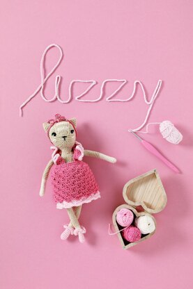 Meet Lizzy, a cuddly kitty who’s extra proud of her cute pink dress! This soft doll is worked in classic amigurumi style, with detailed shaping, embroidered accents, and layered accessories like a double skirt and headband. Crochet Lizzy in any color combination you like—she’s perfect for gifting or display.