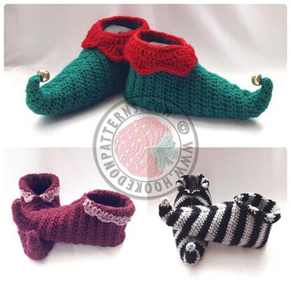 Create fun curly toed slipper shoes for all the family. Sizes given from toddler size all the way up to men's largest standard size! Choose festive colours and add bells or pom poms to make elf shoes.