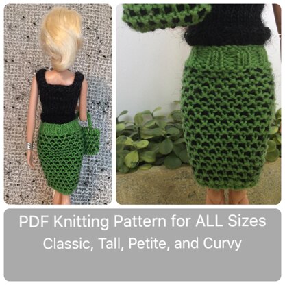 This knitting pattern is for the checked skirt shown with instructions for ALL of Barbie's body types. The existing Body sizes are: Vintage, Silkstone, Athletic, Made-to-Move, and Classic. I will refer to all of the existing styles from now on as "Classic". That's because they vary only slightly, and one set of instructions will work for all "Classic" body styles. The new body styles recently added were, Petite, Tall, and Curvy.
