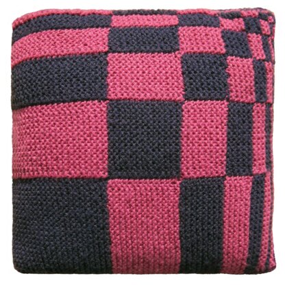 This cushion cover shows the sequence in two directions. It was made using Aran yarns. If you use different yarns the overall size might be different.