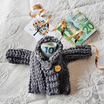 The perfect way to dress up any gft cards or money gifts. This cute cardi gift card holder works up quickly - just a couple hours and uses only a small amount of medium worsted weight yarn.