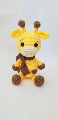 He is made working in continuous rounds with individual pieces sewn together. He measures approx. 12” when sitting and 15.5” when standing. These measurements are when Medium Weight Yarn (4) and a 3 mm hook are used. Any weight yarn and correlating hook size could be substituted as long as all the colors of yarn are the same weight.