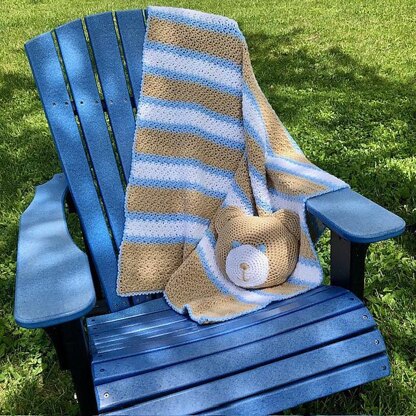 Crochet Pattern for a teddy bear pillow and classic striped blanket. This charming set works up quickly with simple but elegant stitches, and is nursery-ready in no time. A perfect baby shower gift! Written in US crochet terms for Beginner levels. Let’s get started and together crochet something beautiful! ~ CM