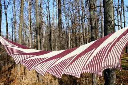 Dacey is a knitted in a bias shawl. The pattern contains only two sections, which would be repeated as many times as desired. The rotation of the contrasting colors brings the charm, the garter stitch makes it squishy, warm and allows a nice drape. Everybody has own favorite yarn, the pattern should be only one of the tools to execute your visions. I would suggest - choose something you already like or something you never tried, but wanted to. Dacey could be nice addition to your collection of wearing knits.