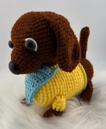 Pitoco is a lovable dachshund amigurumi with a long body, short legs, and a playful look—perfect as: