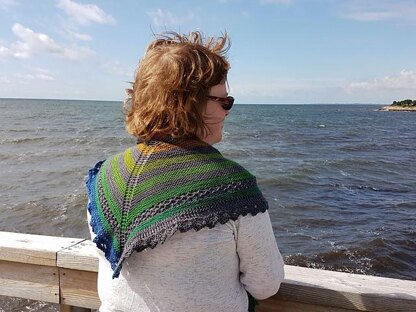 On February 25th 2015, my Daddy, who lived 600 km away from me, had a stroke. While I packed my bag to visit him, I grabbed a beautiful skein of yarn to keep me busy and sane during the long drive. The yarn was Gaugedyeworks yarn, dyed to make a triangular shawl from the top down with stripes which are all the same width. So I knit a shawl and, stitch after stitch, filled it with thoughts and memories of and prayers for my Daddy.