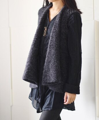 Dado is a surprisingly simple pattern. It has a straightforward construction that uses only increases and knit stitches, no short row nor purl stitch is used. Worked in a bulky but lofty yarn, this drapey vest is both light weight and fast to make and is perfect as a year round layering garment.