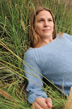 This is my favourite crochet sweater. The yoke is gorgeous! The Daggry sweater is made top-down and that makes it easy to adjust to your body. First you will make the yoke in rows and join it in the back of the sweater. It is a bit taller in the back than in the front and is shaped with short rows. The yoke requires careful counting, but the rest of the sweater is a fast and easy make. The sleevs and body are made in a continous spiral and you can make it as long or short as you prefer. Ribbing for sleeves and body are made separately and sewn to sweater .