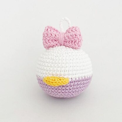 The Daisy christmas ornament has a diameter of 8 cm (the ball part) when using the materials mentioned above. If you are using yarn with a different gauge the toy’s measurements will change. Feel free to use any yarn you want, the toy itself won’t change, just the size. Make sure you sew tightly every part of the toy.