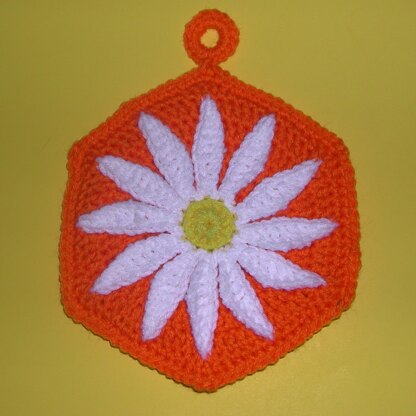 This cheerful daisy will brighten up anyone's kitchen. Make it to match your decor or that of a friend. It can also my made as a black-eyed Susan by changing the center color to brown and the petals to orange-yellow. It will handle the hottest job with its double thickness.