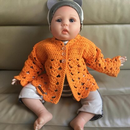 DAKOTA CROCHET BABY CARDIGAN PATTERN PDF - A pretty lacey baby matinee jacket | sweater in size 0 to 3 months. Made seamless all in one from armhole up then armhole down so no sewing of side seams.
