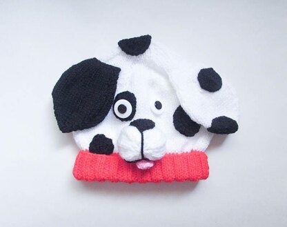 Adorably cute Dalmatian Puppy Dog Animal Baby Beanie Hat. Very easy and quick to make with lots of pictures to help you along the way. This hat pattern is knitted flat on 2 needles and seamed up the back and is entirely knit. It will look adorable and keep your cutie snug and warm