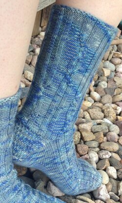 Cables twist down these socks like the snakes in a caduceus, a traditional symbol of medicine.
