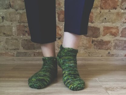 Sizing: Adult S (M) Finished measurements Foot circumference: 7.5 (8)”, 19 (20) cm around. Foot length (adjustable): 9 (10)”, 23 (25) cm. Materials