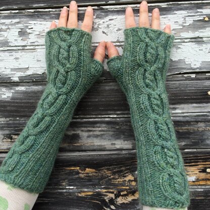 These are about as warm and cozy as you could ever hope for fingerless gloves to be. The yarn is knit at a tighter gauge than usual to keep the wind at bay, and they really do. When I first made these, I lived in western Maine USA and did a lot of walking; they really served me well on even the coldest of days. I made them specifically to wear over those cheap, ratty dollar store gloves that everyone has. They’re also great on their own, especially for tasks where you need full use of all your fingers.
