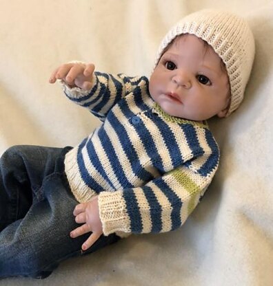 DANDELION combines stripes and simple shapes to make a really versatile little sweater for baby. The front neck fastens with a couple of buttons, making it easy to pop over baby’s head, and the touches of contrasting green add a dash of style to make an ordinary sweater something really special.