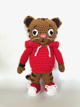 This is my original design based on the PBS Kids show “Daniel Tiger’s Neighborhood,” an animated spin-off of Mr. Rogers’ Neighborhood. This pattern is purely fan art (flattery in its highest form), and is in no way associated with the TV series. It helps to have some experience making amigurumi toys to complete him successfully. But as long as you can crochet in the round, you shouldn’t have any trouble—there are no fancy stitches here. You'll only need about 50 yards of red and 50 yards of golden brown to complete him (and even less of white and dark brown), so he is a great stash buster. You'll also need a very small piece of white felt and some black embroidery floss.