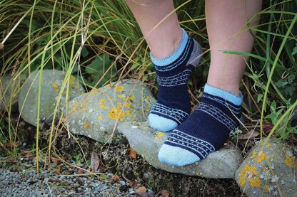 Danseys Pass Socks are a toe-up unisex ankle sock featuring striking and simple fair-isle colour work and a whole lot of stocking stitch.