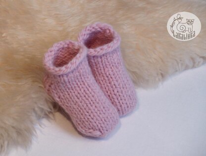 **Design details:**● basic baby booties, baby shoes ● seamless, worked in one piece ● worked from cuff in the round ● Kitchener st for grafting the last sts on the Toe
