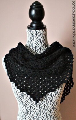 This is a very basic granny stitch style shawl with a slightly scalloped side edge that cascades into a gentle point.