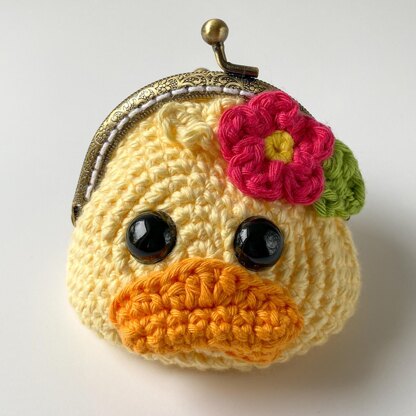 - • Uses Worsted weight cotton yarn, 4mm crochet hook. • Also uses a 3.35 kiss clasp, (2) 14mm safety eyes, embroidery floss or crochet thread