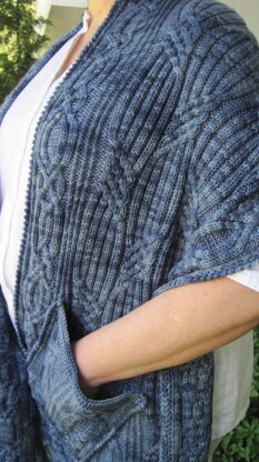 If you love knitting cables, you’ll enjoy this shawl made using worsted weight yarn, guaranteeing that you’ll be warm. The patch pockets ensure that the shawl will stay put on your shoulders.