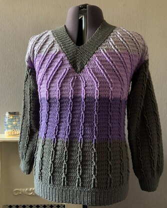 This crochet pattern is for a men's sweater with distinctive cable patterns and a deep v neckline. Crochet Cable is quite different to knitting cable, but easy to do. There are two types of cable pattern as the straight vertical lines turn to a 45 degree across the chest