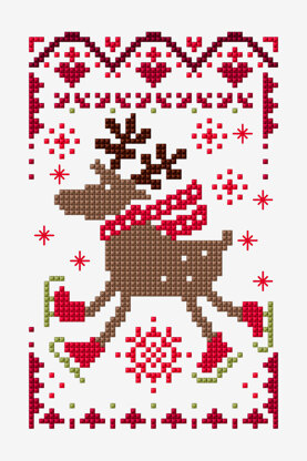 That’s it – this Christmas design is definitely the winner! The free cross stitch pattern gathered all the key elements of the amazing holiday – stars, snowflakes, and the merry deer on the roller blades. What else do you need?