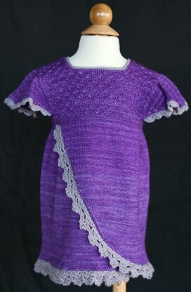My grandmother taught me how to crochet, and while I was making this dress I thought of her. Her middle name was Delia, which I always loved, and it seemed like the perfect name for this frilly dress. This was a design that went from paper to finished item easily, and ended up exactly how I envisioned it in my head. From its flutter sleeves to its lacy edged skirt, it’s a little princess’s dream. The crochet edgings are not terribly difficult, and they add just the right finishing touch to this dress. Knit this dress for that favorite little girl in your life and she’ll be the belle of the ball!