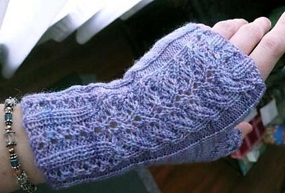 These lacy mitts are knit at a fine gauge and feature a snug, sculpted fit. Light enough for evening wear, they also offer an extra layer of warmth on a chilly day. The lace pattern has a cabled look which is achieved with increases and decreases only—no cable needle needed!