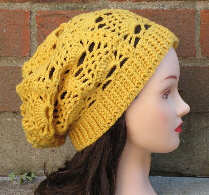 This is a beautiful, detailed slouchy hat featuring a ribbed brim and a stylish, vintage-chic pineapple stitch pattern. This hat is both airy and cozy, perfect for all-season wear! The pattern comes with easy to follow step-by-step instructions and helpful, clear photos.