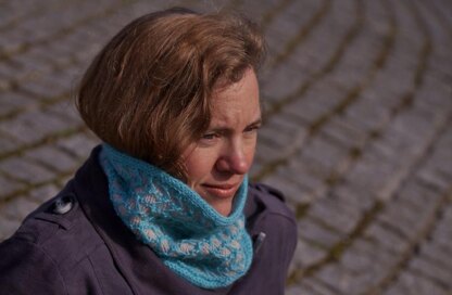 This fun cowl uses two dramatically different DK yarns and an easy slipped-stitch motif to generate a striking geometric pattern for a cozy accessory. Knit up the small size for a close-fitting neck warmer, or the long version for a scarf that can be wrapped several times against harsh winter winds. The pattern includes both charted and written stitch pattern instructions. Sample shown was worked in Blacker Yarns Swan Island DK and Pure Teeswater DK.