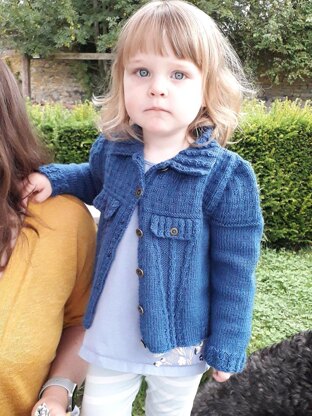 Denim Style Baby-Toddler Cardigan Knitting Pattern for Ages 2-3