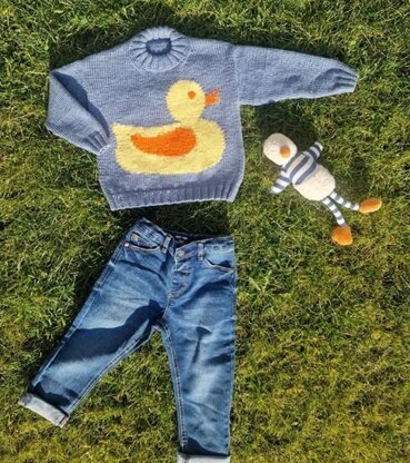 Derek the Duck is a simple sweater motif but it sure does make us smile! Knitted using intarsia technique, Derek's bright colours will brighten up anyone's day! The sweater is worked all in stocking stitch with 2x2 rib hems.