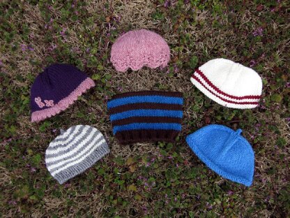 With this pattern you can design your own hats for charity and simple gifts. Five brim designs, three crown designs, plus optional stripes and color blocking choices will give you endless possibilities. Sizes range from newborn to adult large. Hats are meant to be worn with 1-2” negative ease. Samples in the photo are newborn sized.