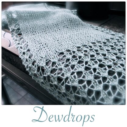 Dewdrops is a fun and easy to knit fingering weight scarf. The stockinette body is accented by beads and lace on each end and along the edges. The beads, which look like dewdrops in the sunlight, give an eye-catching sparkle, while the linen blend fingering weight yarn and lace sections keep the scarf light. The four row pattern repeat is easy to memorize, and the beads are added with a crochet hook, so no stringing of beads is required. Suitable for an advanced beginner and beyond.