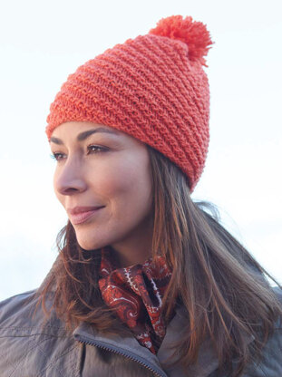 Diagonal Stitch Pompom Hat in Caron United - Downloadable PDF