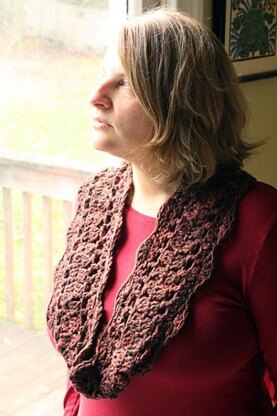 The Diamante Infinity Cowl is a light but chunky cowl that is beautifully lacy yet deliciously warm. Because it uses a big hook, the entire piece works up in just 1-2 hours, making it perfect for gift giving! The cowl can be worn single or doubled. Malabrigo Twist is a great yarn for this pattern because it is cottony soft around the neck, but you can easily substitute the aran (or even a thicker worsted) weight yarn of your choice. Finished size is approximately 5 1/2" x 50".