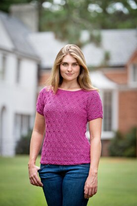 I love this lace pattern! There's a lot of detail in the lace, so I chose to keep the shape of the piece very simple. The body is worked in the round to the armholes, then stitches are cast on for the sleeves, and the back and front are worked separately to the beginning of shoulder shaping. The shoulders are shaped using short rows or bind-offs – your choice.