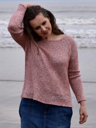 **DESIGN OVERVIEW:**Front and back of sweater are knitted separately bottom up in Diamond Drops stitch. After front and back are completed and shoulder seams are sewn, the stitches are picked up for sleeves and neck finishing. Sleeves are knitted in stockinette. This design features wide round neck and long sleeves with dropped shoulders. The sweater is knitted with positive ease 10-12 cm/4-5”.