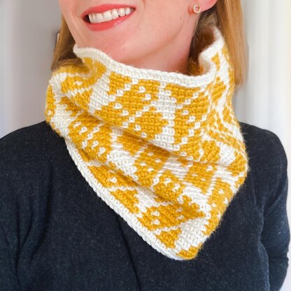 This striking tapestry crochet cowl is just perfect for keeping warm in cooler months.