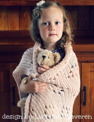 This gorgeous knit-look blanket is light weight, soft and stretchy - the perfect blanket for baby. Openwork spaces create the beautiful, lacy diamond pattern. The knit-look fabric has a natural rolled edge at top and bottom of blanket for a lovely finish.