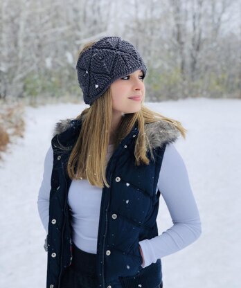 This is a PDF crochet pattern for a textured diamond stitch ear warmer in sizes from child through large adult. See the coordinating Diamondback Beanie and Diamondback Slouch patterns.